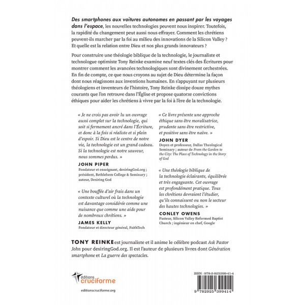 Pour construire une théologie biblique de la technologie, le journaliste et technologue optimiste Tony Reinke examine neuf textes clés des Écritures pour montrer comment les avancées technologiques sont divinement orchestrées. En fin de compte, ce que nous croyons au sujet de Dieu détermine la façon dont nous réagissons aux inventions humaines. En s’appuyant sur plusieurs théologiens et inventeurs de l’histoire, Tony Reinke dissipe douze mythes courants que l’on retrouve dans l’Église et propose quatorze convictions éthiques pour aider les chrétiens à vivre par la foi à l’ère de la technologie.