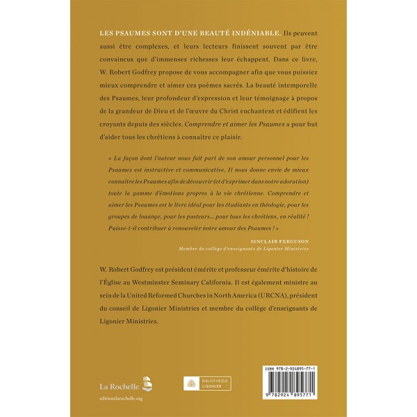 Dans ce livre, W. Robert Godfrey propose de vous accompagner afin que vous puissiez mieux comprendre et aimer ces poèmes sacrés. La beauté intemporelle des Psaumes, leur profondeur d’expression et leur témoignage à propos de la grandeur de Dieu et de l’œuvre du Christ enchantent et édifient les croyants depuis des siècles. Comprendre et aimer les Psaumes a pour but d'aider tous les chrétiens à caonnaître ce plaisir.