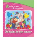 Remplis de son amour Album de jeux et de coloriages basé sur le livre « Remplis de son amour - 1 Corinthiens 13 » Auteur : De Bézenac Salem et Agnès Éditeur : ICharacter  Catégorie : Enfants - 6 ans Parution : 2016 Pages : 32 Poids : 115 g Dimensions :17 x 22 x 0,4 cm EAN : 9781623876982Â